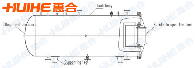 The autoclave includes body, lid, swivels, tracks, seals, rollers, locking wedge, steam, and nozzle, cooling pipe and valves and so on.