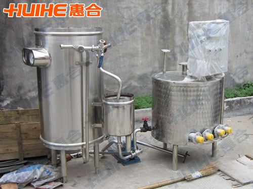 The general material into the heat exchange device through the centrifugal pump to get preheating, then after the high temperature barrel which is full of high pressure, the material is rapidly heated to the sterilization temperature and maintains for about 3seconds, the microorganism and enzymes are kills quickly. After getting out the high temperature barrel, the materials cool down by heat exchanging with cold materials, so the temperature is generally low than 65℃. If the next process needs to increase temperature, it can be done by adjusting the angle globe valve or circulation. Otherwise, cooling water should be access to low the discharge temperature. The discharge is controlled by throttle valve. Under a certain pressure, this valve can maintain the boiling point higher than highest temperature. Adjust this valve when normal production, the driving force from the pump overcome the spring pressure to form backpressure, and thus to control flow. Surely, it should be all open when cleaning this sterilization machine. Circular storage tank can be used for the preparation of acid and alkali solution, and clean the coil fouling in the inner wall effectively. Because adopting the stainless steel triplet cock, the flow can be adjusted suitably.