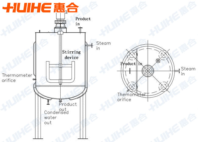 Sugar dissolving tank designed by Hangzhou Huihe Company is a kind of new stainless steel tank . The pot body is composed by cylindrical tube of stainless steel sealing head, forming the heat transfer sandwich. With outside polished by stainless steel packing, the surface is beautiful. The contents and cold water are dissolved in the pot, then steam ventilated into jacket, in order to achieve the purpose of heat and melt. And a tube line with jacket is equipped with pressure gauge and safety valve, in order to check the pressure in the jacket, and ensure the safety in production.