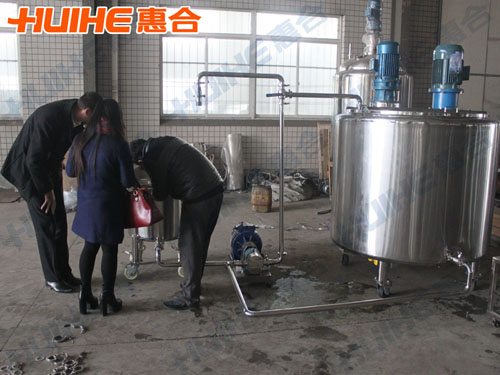英國客戶需要加工類似蜂蜜的糖漿,欲采購不銹鋼容器用于其產(chǎn)品的加工。經(jīng)過與業(yè)務員的多次溝通協(xié)商,客戶于2014年11月底在我公司訂購1000L和100L各一臺乳化罐。歷時1個多月,設(shè)備終于順利完工。2015年1月9日,英國客戶來工廠驗貨,業(yè)務員和技術(shù)工程師對乳化罐作了詳細的講解,客戶對設(shè)備較為滿意。