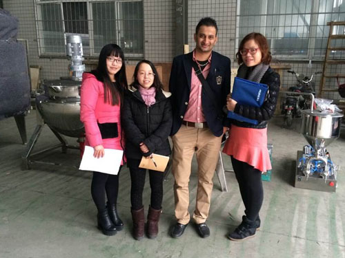 2015年2月3日,坦桑尼亞客戶需要采購(gòu)一套牛奶生產(chǎn)線設(shè)備,來(lái)我公司與業(yè)務(wù)員和技術(shù)工程師進(jìn)行具體需求的洽談,并參觀工廠進(jìn)一步了解牛奶生產(chǎn)線的組成設(shè)備。下圖為業(yè)務(wù)員與客戶合影留念: