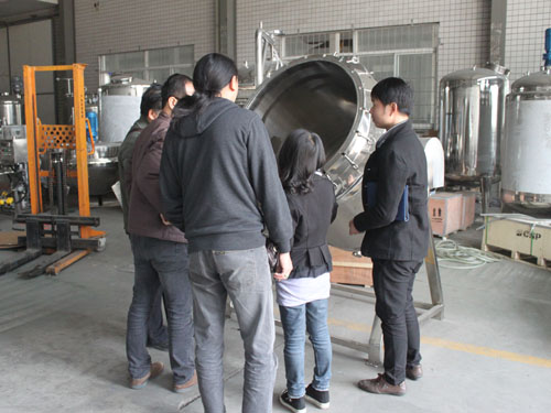 圖為客戶參觀準備包裝發貨的立式夾層鍋