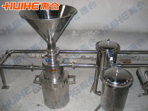 本機(jī)中與物料接觸的部分采用耐蝕不銹鋼材料。符合食品衛(wèi)生的要求。該機(jī)的工作是靠聯(lián)結(jié)在封閉電動機(jī)不銹鋼套軸上的翼輪來達(dá)到混合的目的,并由不銹鋼彈簧、壓緊密封圈、密封圈等組成機(jī)械密封裝置,進(jìn)料斗與泵體用夾緊箍連接,電動機(jī)與泵座用螺栓連接在機(jī)架上,整機(jī)可作任意移動,可以不用固定的安裝基礎(chǔ)。
