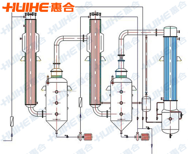 1、物料由列管上部進(jìn)入,經(jīng)物料分布器均勻進(jìn)入每一根管中并沿管內(nèi)表面形成薄膜。通過間壁傳熱,物料得以沸騰,沸騰的氣體帶動(dòng)液體高速向下流動(dòng),進(jìn)入汽液分離器,產(chǎn)品得以濃縮。