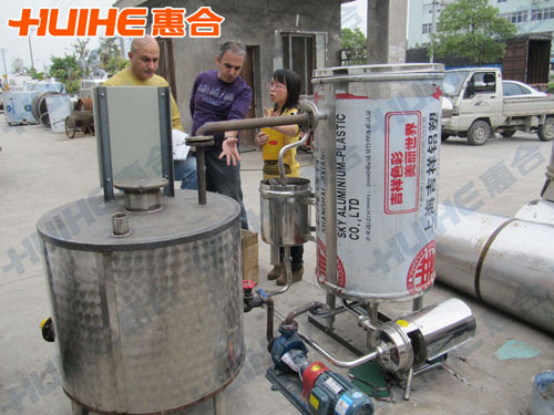 2、用膠體磨磨好的漿液用水稀釋后過(guò)濾,用120目紗布過(guò)濾,澄清的液汁注入罐中備用(注意控制用水量)。